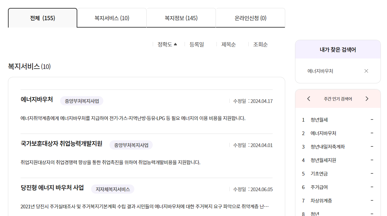 3. 검색결과 창에 에너지 바우처 클릭한다.